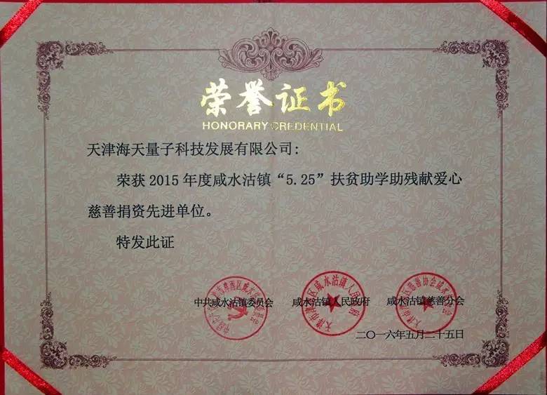 ballbet贝博物联获2015年度“5·25”扶贫助学助残捐款先进单位称号