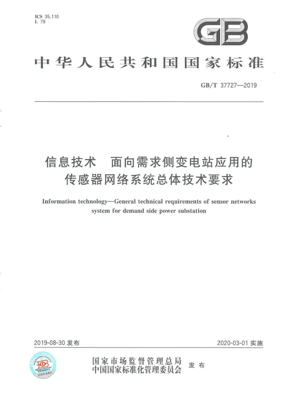 近日,由天津ballbet贝博物联科技股份有限公司主导制定的《信息技术 面向需求侧变电站应用的传感器网络系统总体技术要求》已由国家市场监督管理总局和中国国家标准化管理委员会纳入国家标准,标准编号为:GB-T 37727-2019。该标准于2019年8月30日发布,将于2020年3月1日开始实施。