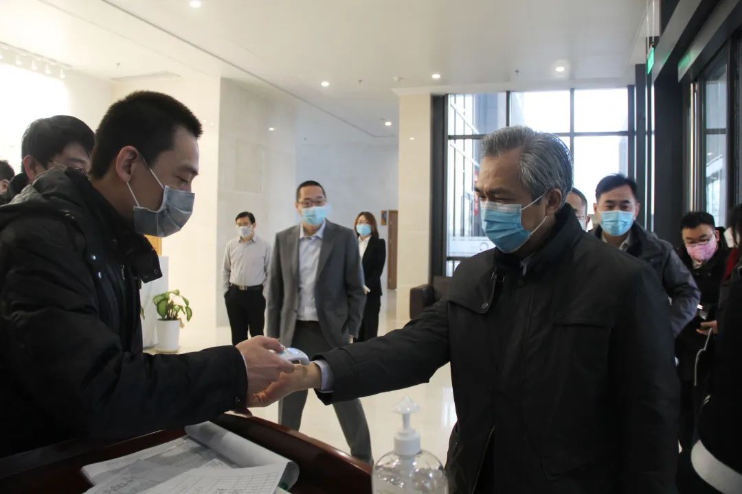 2020年2月20日,天津滨海高新技术产业开发区党委书记、管委会主任单泽峰(时任),天津市财政局副局长梁宣健,高新区税务局党委书记、局长田景强等一行率队到天津ballbet贝博物联科技股份有限公司进行调研服务,并送来防疫物资;ballbet贝博物联董事长刘柏呈,执行总裁庞文魁,总裁王涛,副总裁杨鸥、米玉淼、赵梅,汇峰设计院副院长丰美丽陪同调研,并详细介绍企业疫情防控工作开展情况。