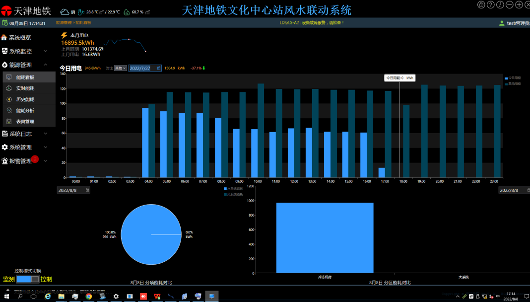 目前,风水联动系统已经在天津6号线文化中心站进行部署,该站是集文化、商业、休闲为一体的大型综合性轨道交通换乘站,客流量大、换乘通道多、客流分布不规律,传统的人工调节空调模式能耗高、灵活性差,更换为ballbet贝博风水联动系统后,可根据站内客流量的变化,第一时间进行温度的调节,并根据同时段出行情况,进行客流预测,自动调节温度,在制冷季可为空调系统节约能耗35%以上。