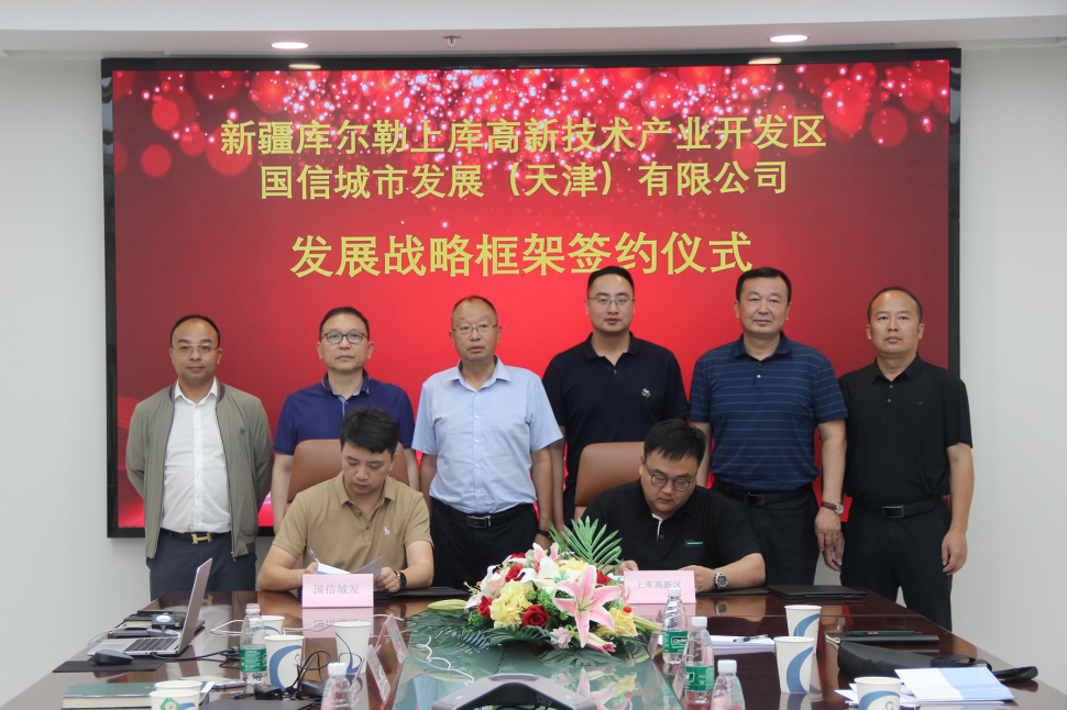 会上,新疆库尔勒上库高新技术产业开发区与国信城市发展(天津)有限公司签署发展战略框架协议,库尔勒市政协党组书记、副主席、上库高新区党工委书记鲜智、ballbet贝博物联董事长刘柏呈等见证。