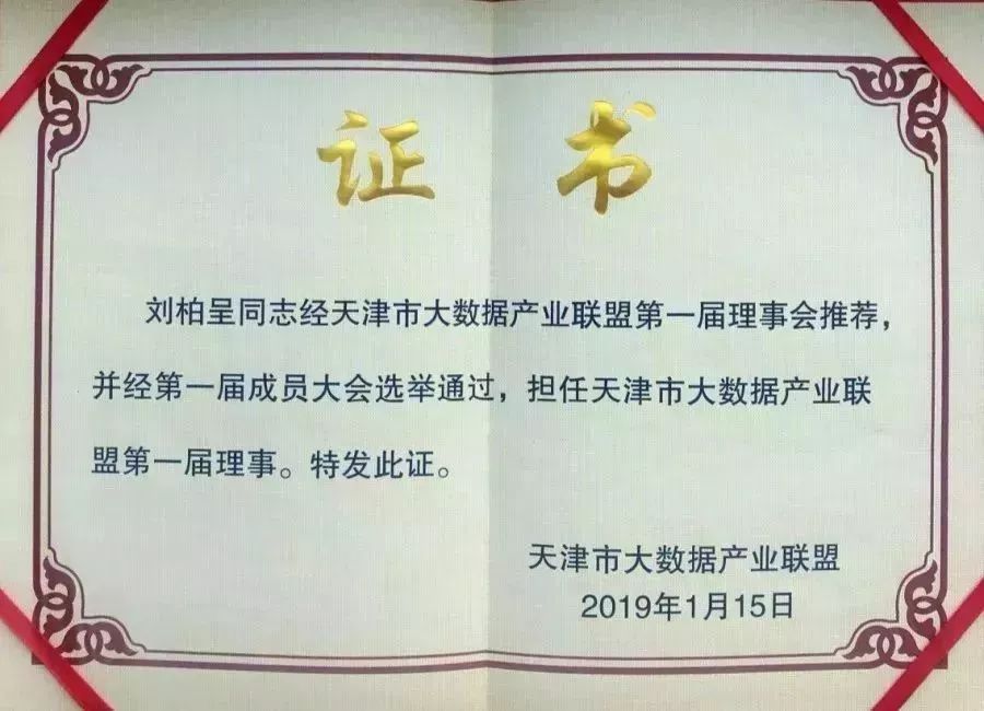 ballbet贝博物联董事长刘柏呈担任天津市大数据产业联盟第一届理事